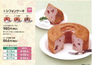 シフォンケーキ 予約・当日販売(ご予約は4/15日まで) @ ヤマザキショップ上品の郷店