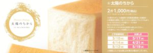 高級生食パン「太陽のちから」お渡し日限定販売(ご予約は5/12まで)