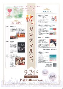 カテゴリー 定休日 アジェンダ アジェンダ 日 月 週 9月 2022 9月 2022 すべて閉じる すべて開く 9月 2 金 ロイズ移動販 チケット 9月 2 – 9月 5 終日 9月 7 水 日本伝統芸能 猿まわし チケット 9月 7 @ 10:00 AM – 6:00 PM 9月 9 金 産業創造(6次産業対面型商品販売会) チケット 9月 9 – 9月 10 終日 ↓詳しくはこちらをご覧ください。 http://www.iss-net.jp/6jika/archives/6946 (石巻市6次産業化・地産地消推進センター) 9月 11 日 新発売 あいうえおいしい『牡蠣くけコーラ』 チケット 9月 11 終日 9月11日(日)より、道の駅上品の郷オリジナル商品第二弾!! あいうえおいしい『牡蠣くけコーラ』が新発売😊 地元石巻産の牡蠣と金華塩を使ったオリジナルのクラフトコーラ✨ 濃厚な牡蠣のうまみと金華塩がアクセントとなった飲みやすさにこだわった逸品😋 当日は、オリジナル商品第一弾の鹿肉カレーパン、ホタテシチューパンも販売予定🎵 是非お越しくださいませ🤗 9月 17 土 お彼岸用切り花朝市 チケット 9月 17 – 9月 19 終日 9月 20 火 【営業時間変更のお知らせ】ヤマザキショップかほく上品の郷 チケット 9月 20 終日 台風接近に伴い、お客様及び従業員の安全確保の為 誠に勝手ながら営業時間を変更させて頂きます。 お客様には大変ご迷惑をおかけ致しますが、 何卒ご理解頂けますようお願い申し上げます。 9月 23 金 加美町木彫りの会の皆さんによる実演(釜神様) チケット 9月 23 – 9月 25 終日 9月 24 土 サンテマルシェ チケット 9月 24 終日 ベリーダンス チケット 9月 24 終日 9月 25 日 伊東洋平フリーライブ チケット 9月 25 終日 9月 2022 9月 2022